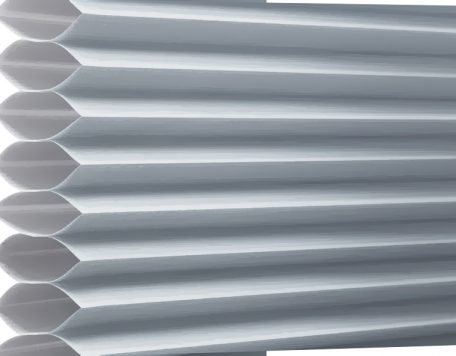 De geleverde plissé in glas zijn voorzien van een honingraat, waardoor de gordijnen in glas een extra holle kamer krijgen. Daardoor krijgen de plisségordijnen tussen glas een extra isolerende werking. De buitenkant is altijd wit. Hierdoor wordt ook de warmte in de zomer beter buiten gehouden omdat de UV stralen worden geweerd door de witte buitenzijde. De binnenkant kan zowel in wit als in creme 9001 worden gekozen. Dit geeft een mooie luxe sfeer.