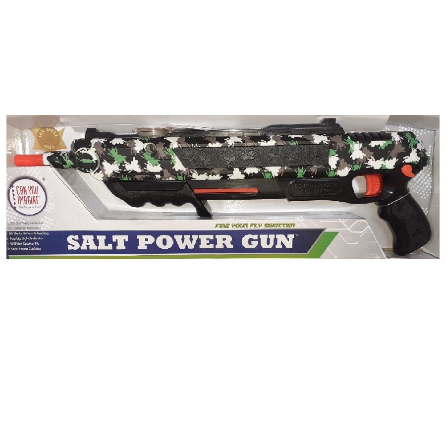 Vliegen zoutpistool  Bugbusters zijn bedoeld voor de echte insectenjagers. De handmatige veiligheid is gemakkelijk te hanteren met een simpele knop, de trekker heeft een nieuw, verbeterd design met een lichte trekkerdruk en het richtmiddel is duidelijker en preciezer dan alle voorgangers. Deze verbeterde versie van de Saltgun versie heeft een gestroomlijnde vorm die goed in de hand ligt. Ook heeft de  verbeterde versie een sterkere veer, waardoor dit zoutgeweer effectiever is op de langere afstanden. Zelfs insecten uit de lucht schieten is mogelijk!